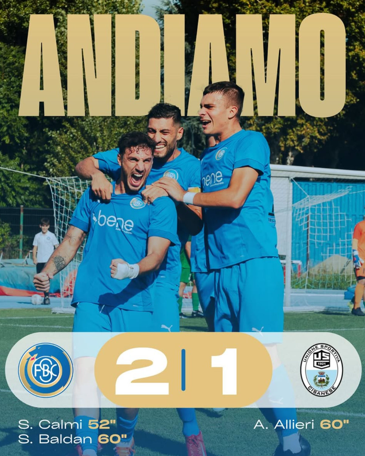 Esordio vincente per gli Azzurri che al Ferruccio piegano la Cisanese 2-1.