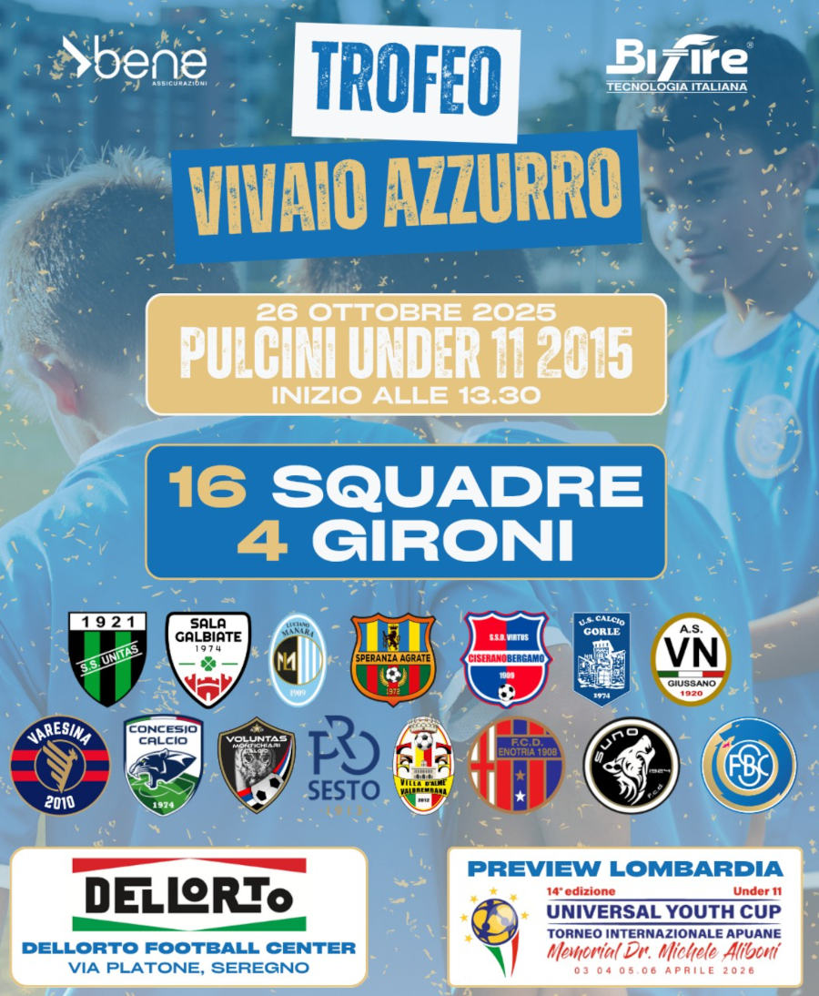 DELLORTO Football CenterSeregno FBCVivaio Azzurro 22/10/2025 Ecco il Trofeo Vivaio Azzurro Il primo torneo che si svolgerà al nostro DELLORTO FOOTBALL CENTER! Scopri di più